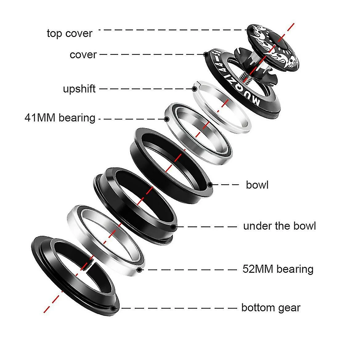 Specifications: 44-56mmUpper headset 44MM lower headset 56MMSuitable for: Fork for 28.6Structure: Concealed HeadsetMaterial: Aluminum alloycolour: blackPackage Contents:1 x Bicycle HeadsetOnly the above package content, other products are not included.Note: Light shooting and different displays may cause the color of the item in the picture a little different from the real thing. The measurement allowed error is +/- 1-3cm.